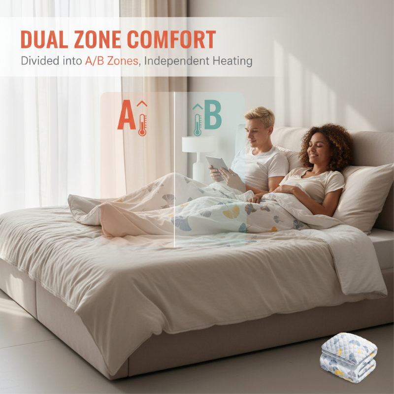 TO-ZONET TEMPERATURKONTROL - Tillader to personer at indstille deres foretrukne temperatur for hver deres side af sengen. Det eliminerer kompromiser og sikrer, at begge brugere nyder deres ideelle varme for en virkelig hvilefuld nats søvn.